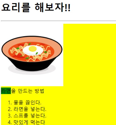 이해가 쉽도록 css를 활용하여 배경색을 넣었습니다.