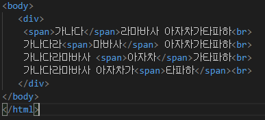 블록태그인 div와 , 인라인태그인 span을 사용하여 코드를 작성했습니다.