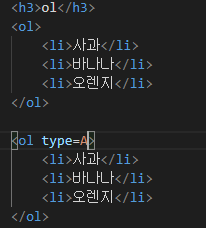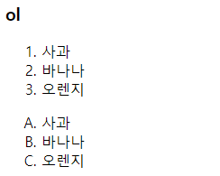 ol의 경우는 순서가 있는 리스트이므로 type속성을 통해 마커를 설정할 수 있다. 디폴트는 숫자이다.