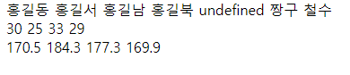 let name = ["홍길동", "홍길서", "홍길남", "홍길북"];